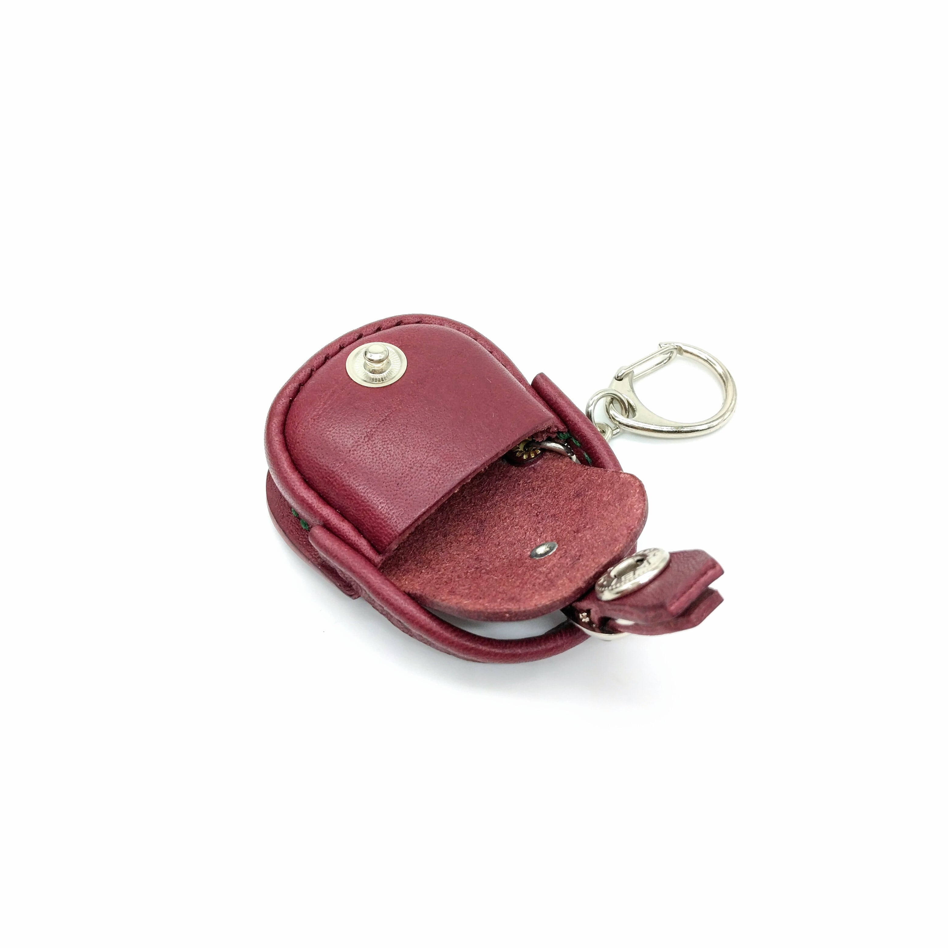 持ち手と金具がまるでショルダーバッグの様で、本物の鞄ようにホックで開け閉めが出来きます。中に小銭(500円玉5,6枚)や薬やリングやピアス等をちょっとだけ入れられます。