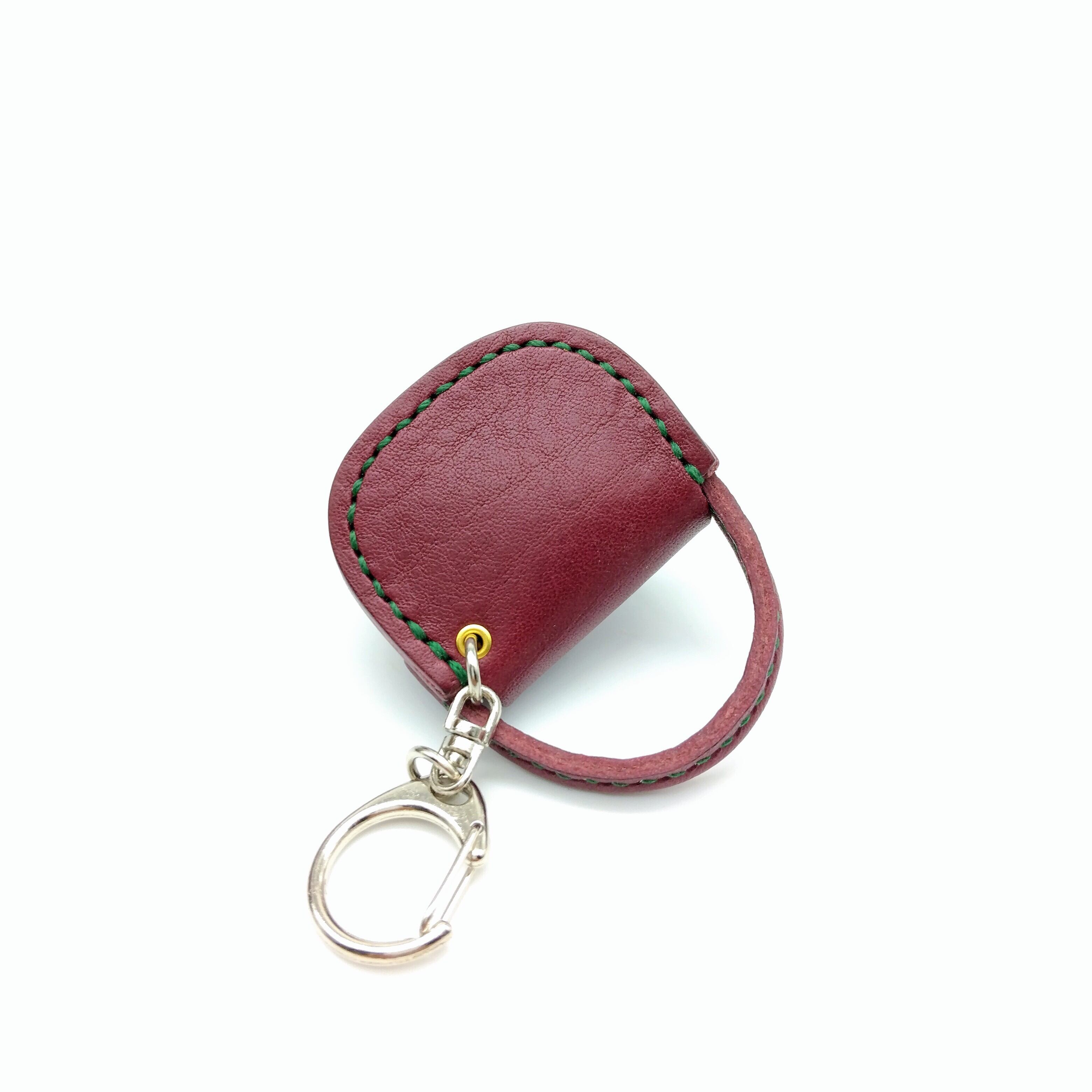 綺麗なワイン色の革にグリーンステッチでお洒落な配色です。