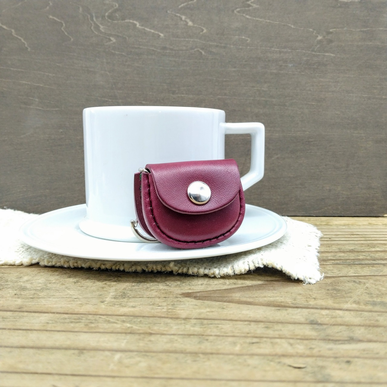 丸くコロンとした形が可愛らしく、本物の鞄ようにホックで開け閉め出来るので中に小銭(500円玉7,8枚)や薬やリングやピアス等をちょっとだけ入れられます。