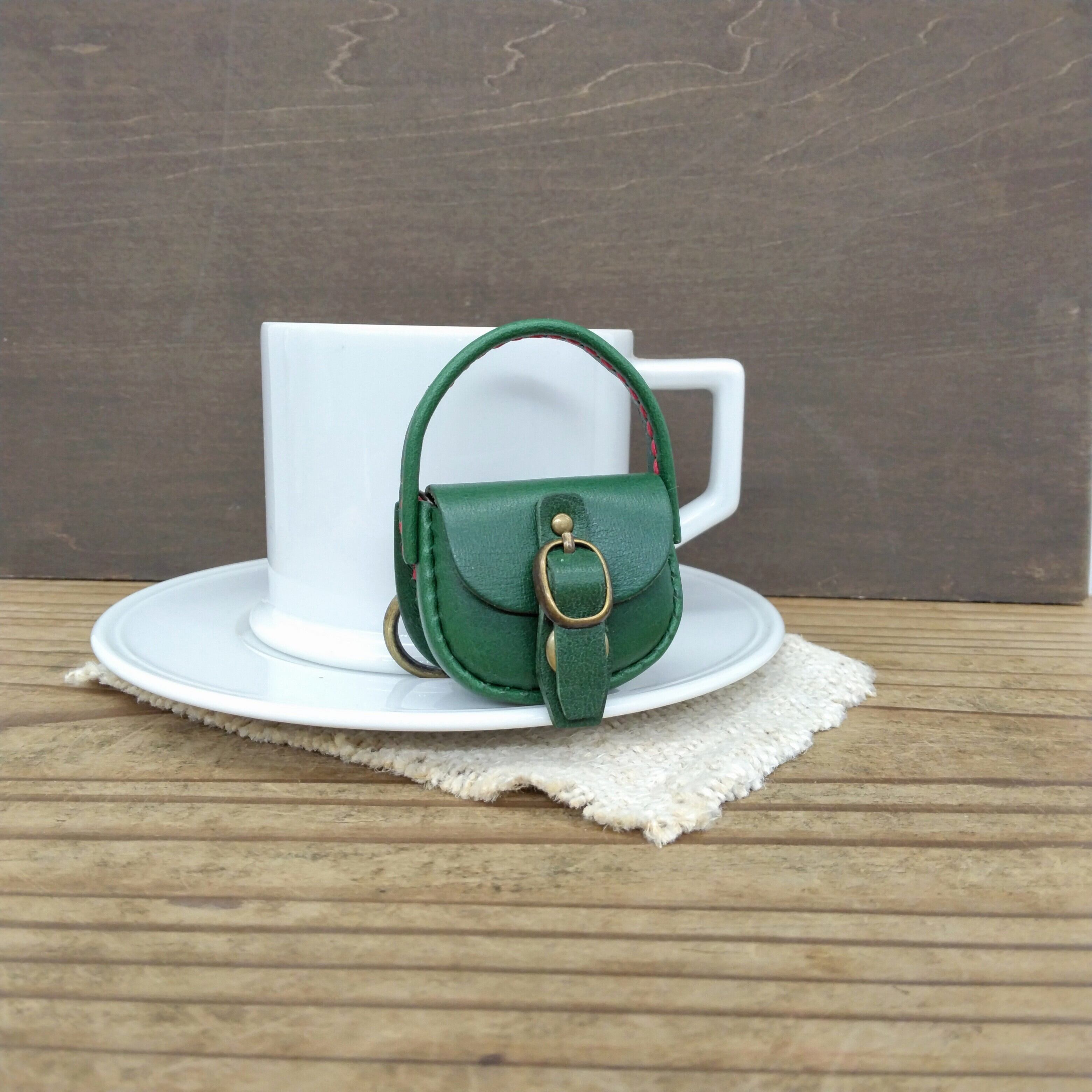 持ち手と金具がショルダーバッグの様で、本物の鞄ようにホックで開け閉めが出来きます。中に小銭(500円玉5,6枚)や薬やリングやピアス等をちょっとだけ入れられます。