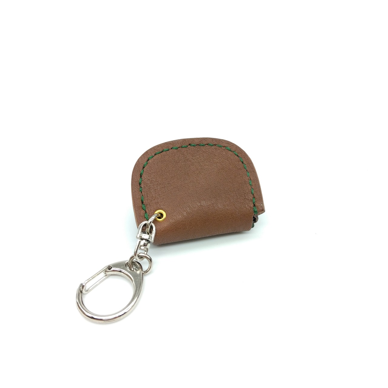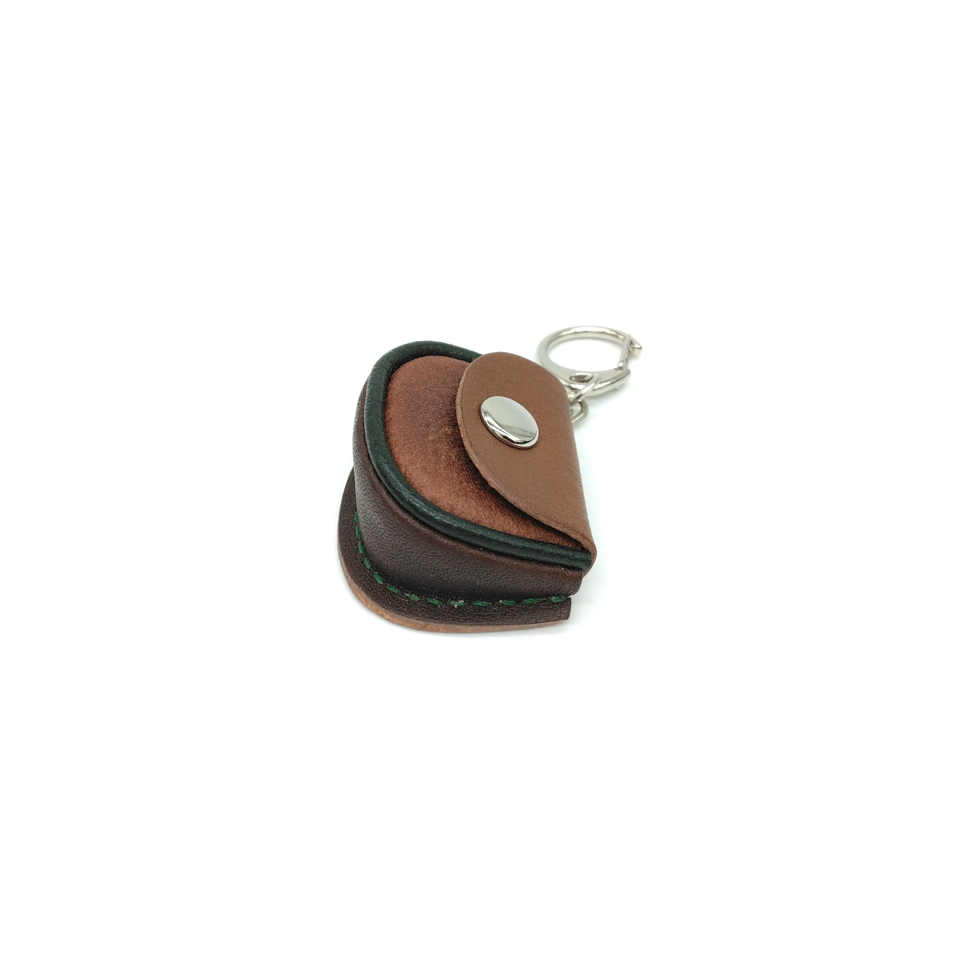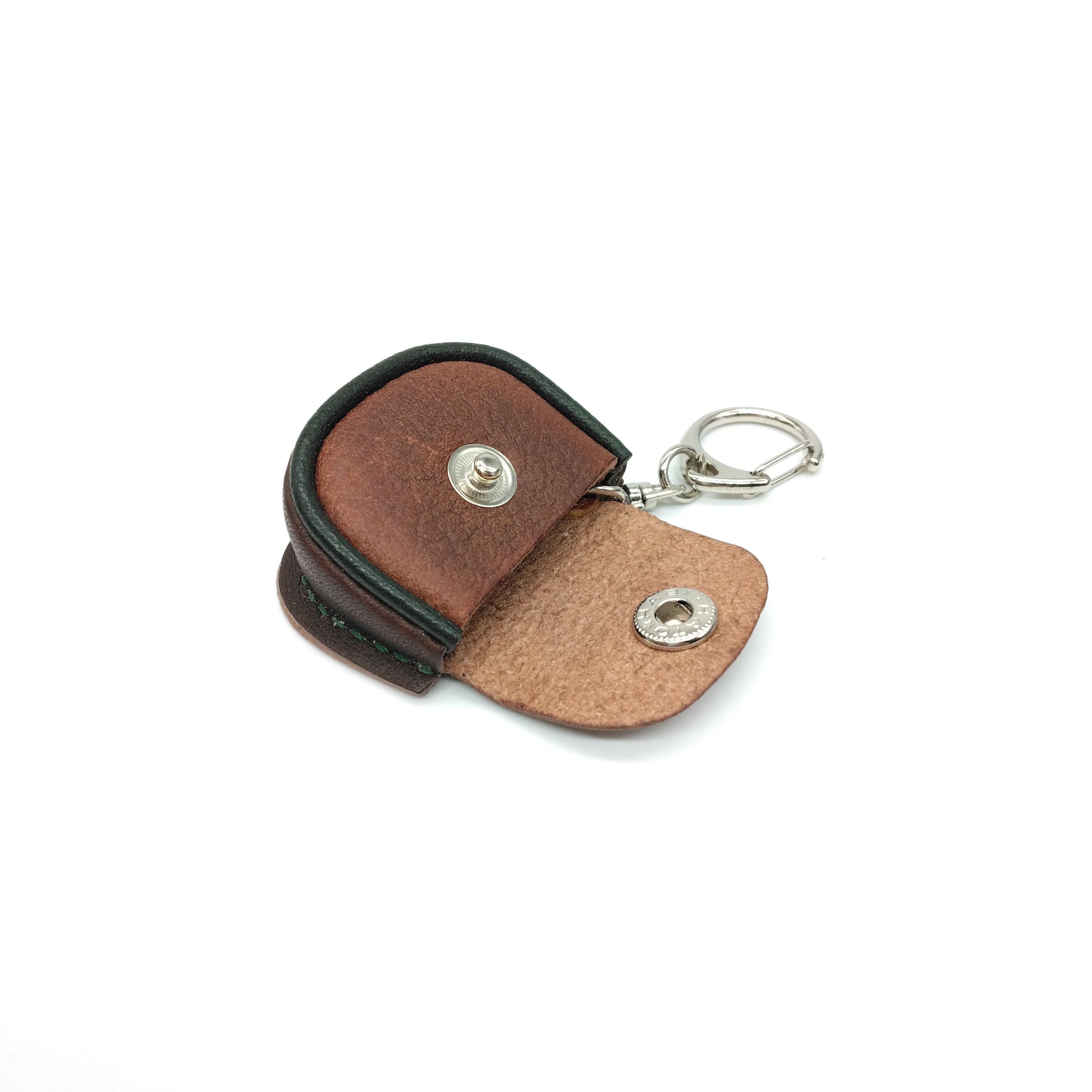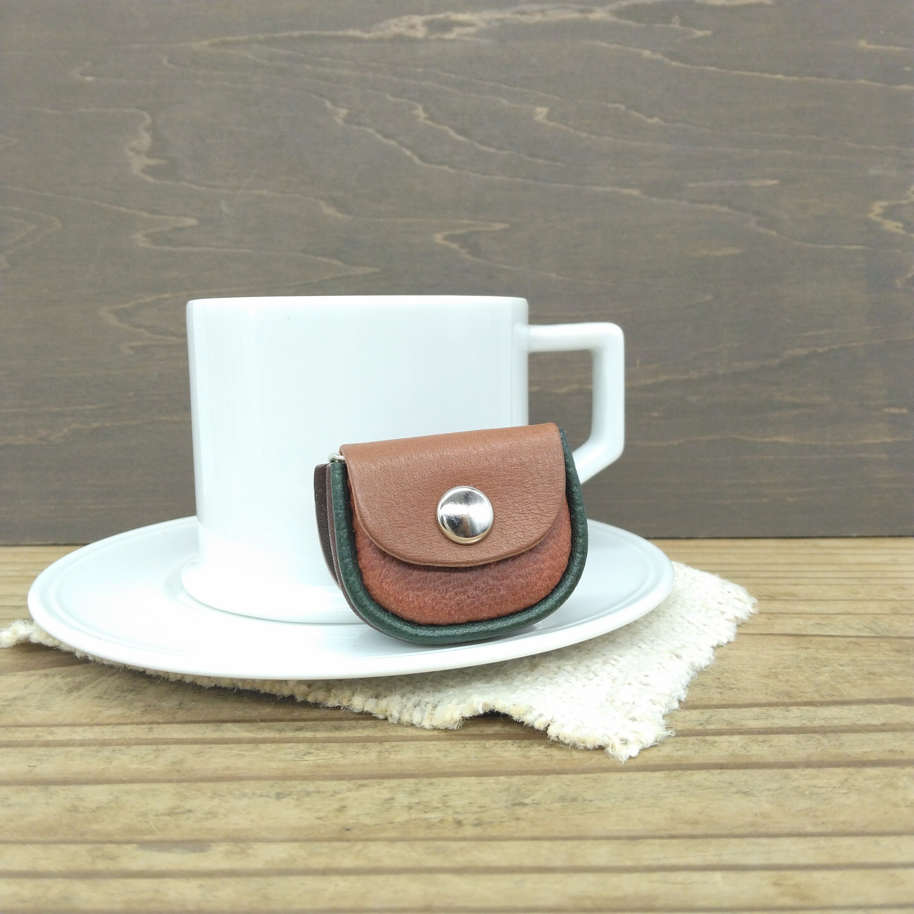 茶系の革を3種類組み合わせてグリーンのパイピングを入れました。