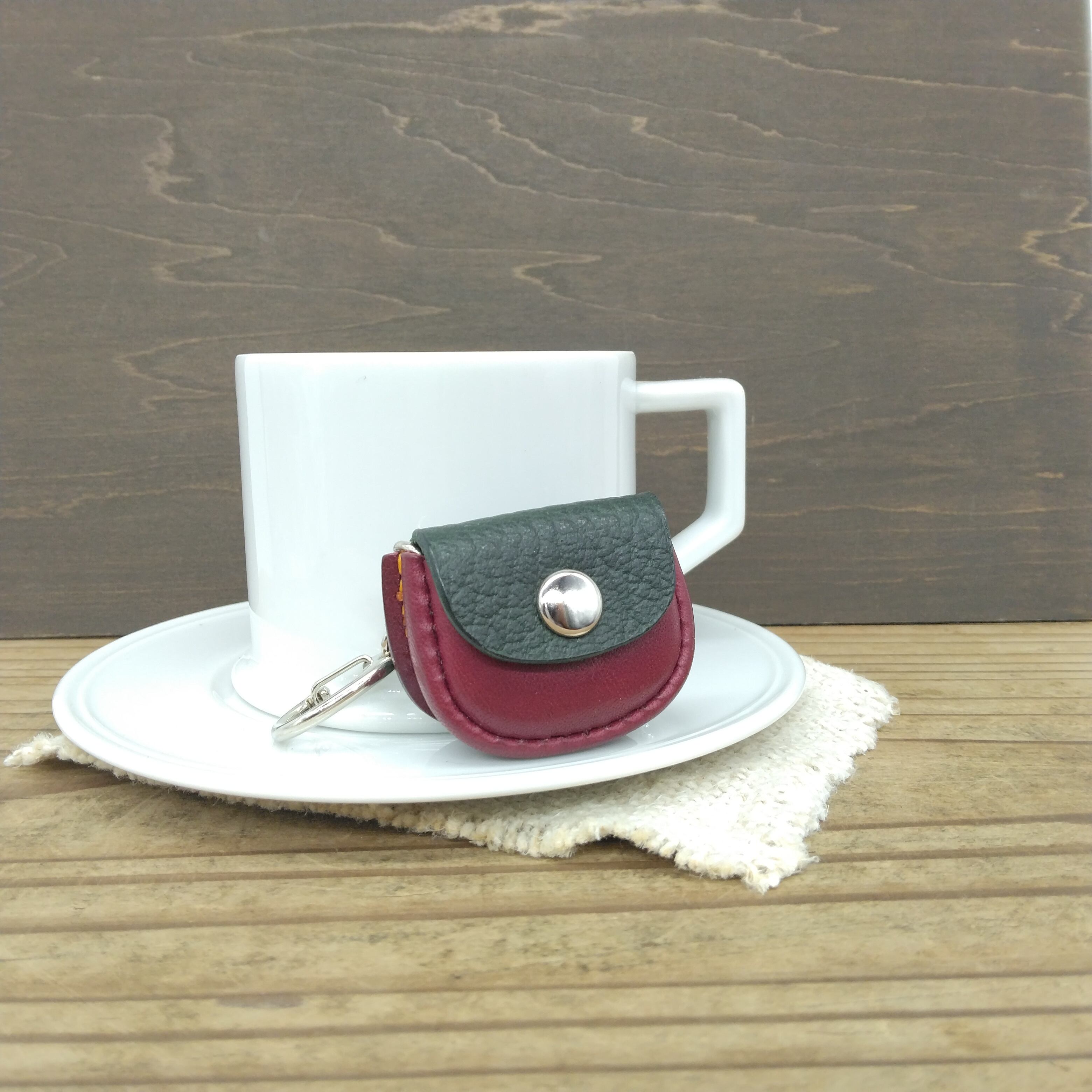 丸くコロンとした形が可愛らしく、本物の鞄ようにホックで開け閉め出来るので中に小銭(500円玉7,8枚)や薬やリングやピアス等をちょっとだけ入れられます。