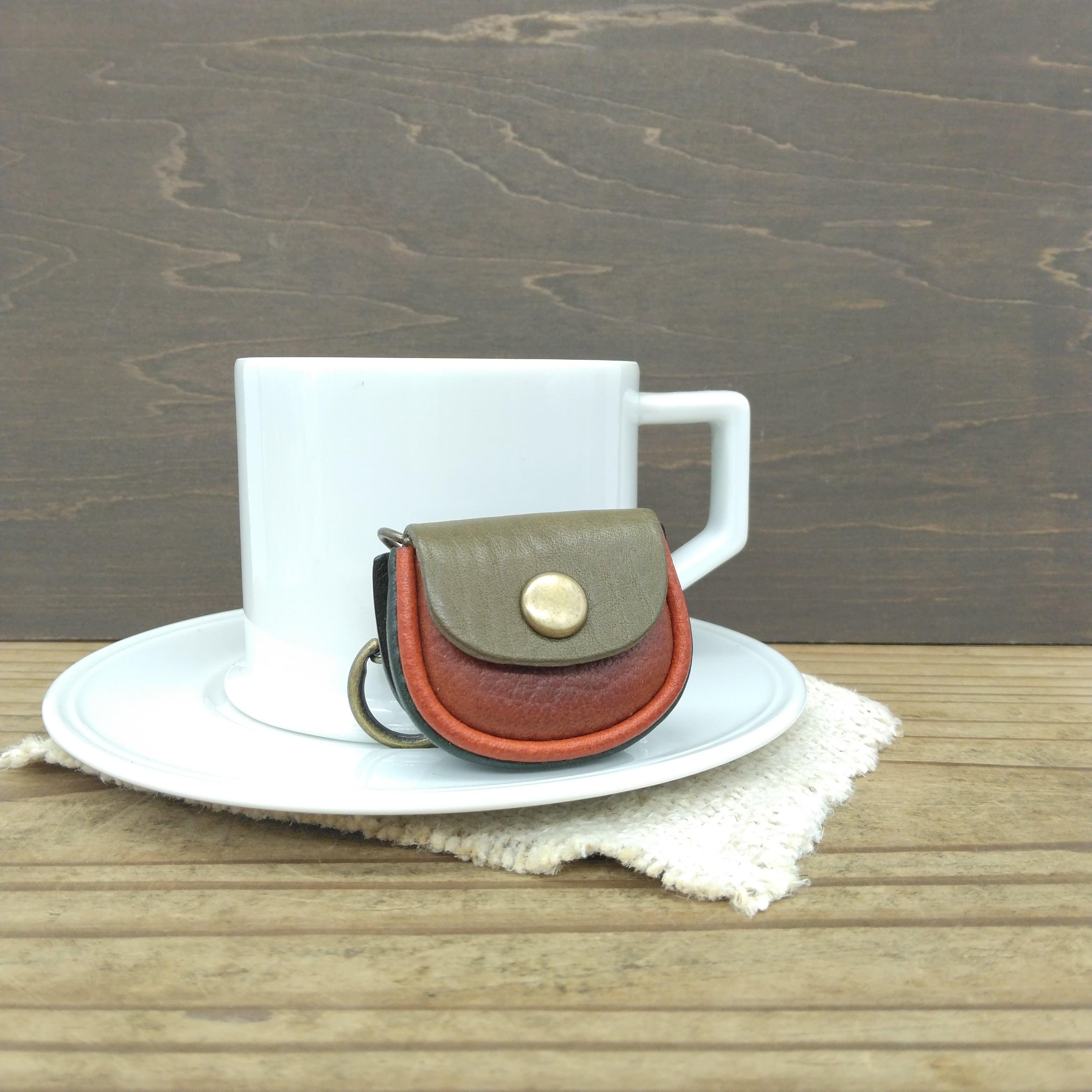 丸くコロンとした形が可愛らしく、本物の鞄ようにホックで開け閉め出来るので中に小銭(500円玉7,8枚)や薬やリングやピアス等をちょっとだけ入れられます。