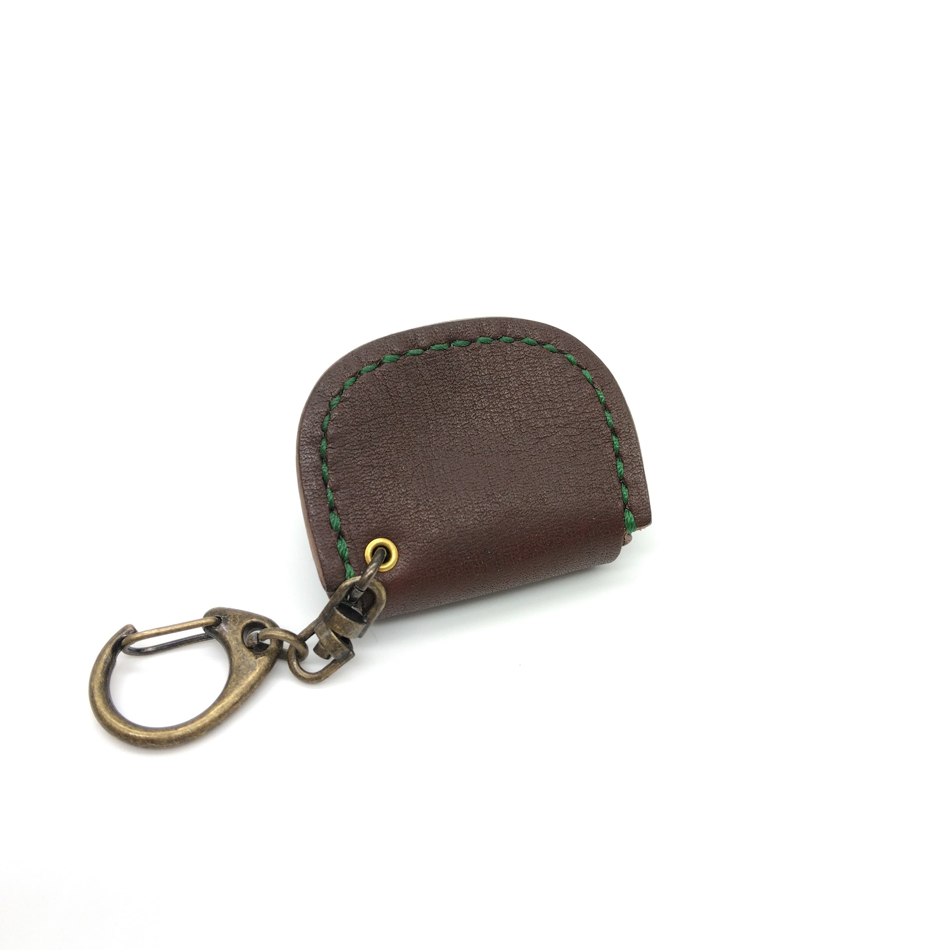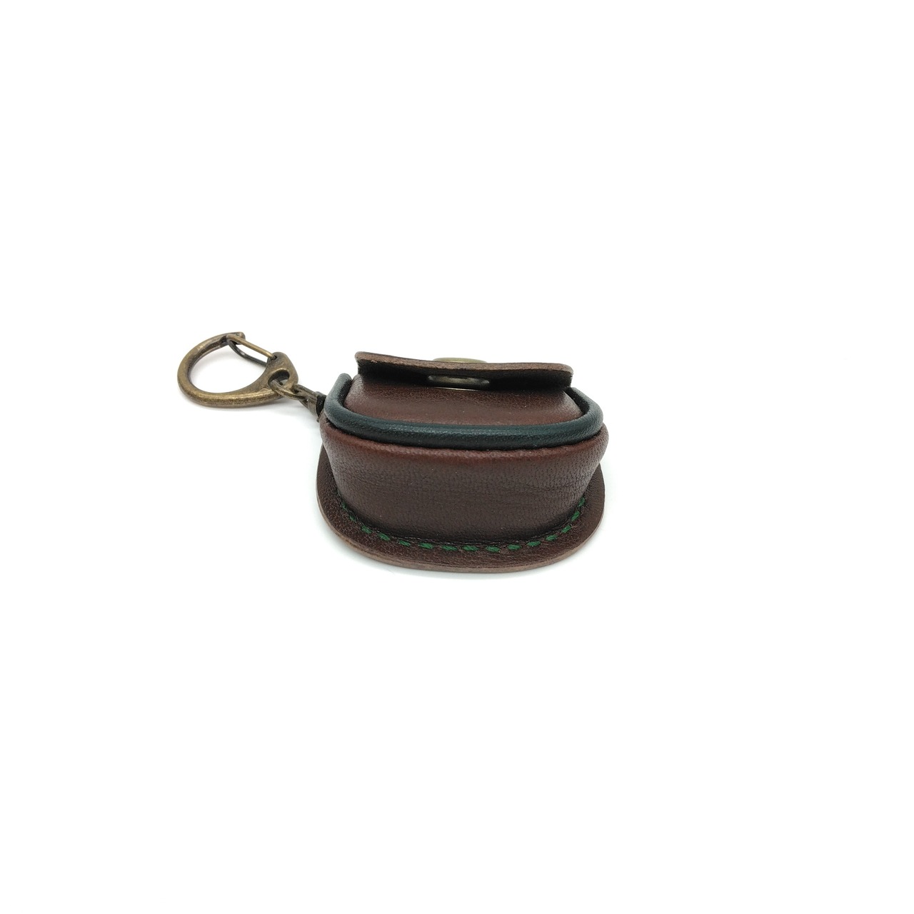 こげ茶の革に緑のパイピングを入れてグリーンステッチを合わせました。